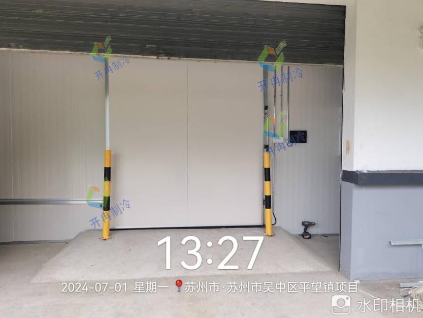 1、庫(kù)房部分:該農(nóng)產(chǎn)品冷庫(kù)的墻體采用雙面0.426彩鋼100mm厚聚氨酯高壓發(fā)泡保溫板,密度40±2kg/m3,阻燃等級(jí)B1級(jí)。配備有單開(kāi)手拉平移門(mén),該門(mén)為雙面彩鋼聚氨酯保溫門(mén),冷庫(kù)門(mén)帶防結(jié)露電加熱高抗凍熟料密封條,帶安全脫鎖裝置。與門(mén)聯(lián)動(dòng)配備有風(fēng)幕機(jī)以及設(shè)有PVC門(mén)簾,防止熱能進(jìn)入。地面鋪設(shè)50mm厚XPS擠塑板兩層交錯(cuò)壓縫鋪設(shè),共100mm厚,阻燃等級(jí)B2級(jí)。擠塑板上下兩層鋪設(shè)PE隔汽膜,最后鋪設(shè)100mm厚鋼筋混凝土地坪(含門(mén)口斜坡)。此外,采用頂部T型鋁吊梁用于冷庫(kù)頂板加固,還配備有絲桿、密封硅膠等安裝輔料。
